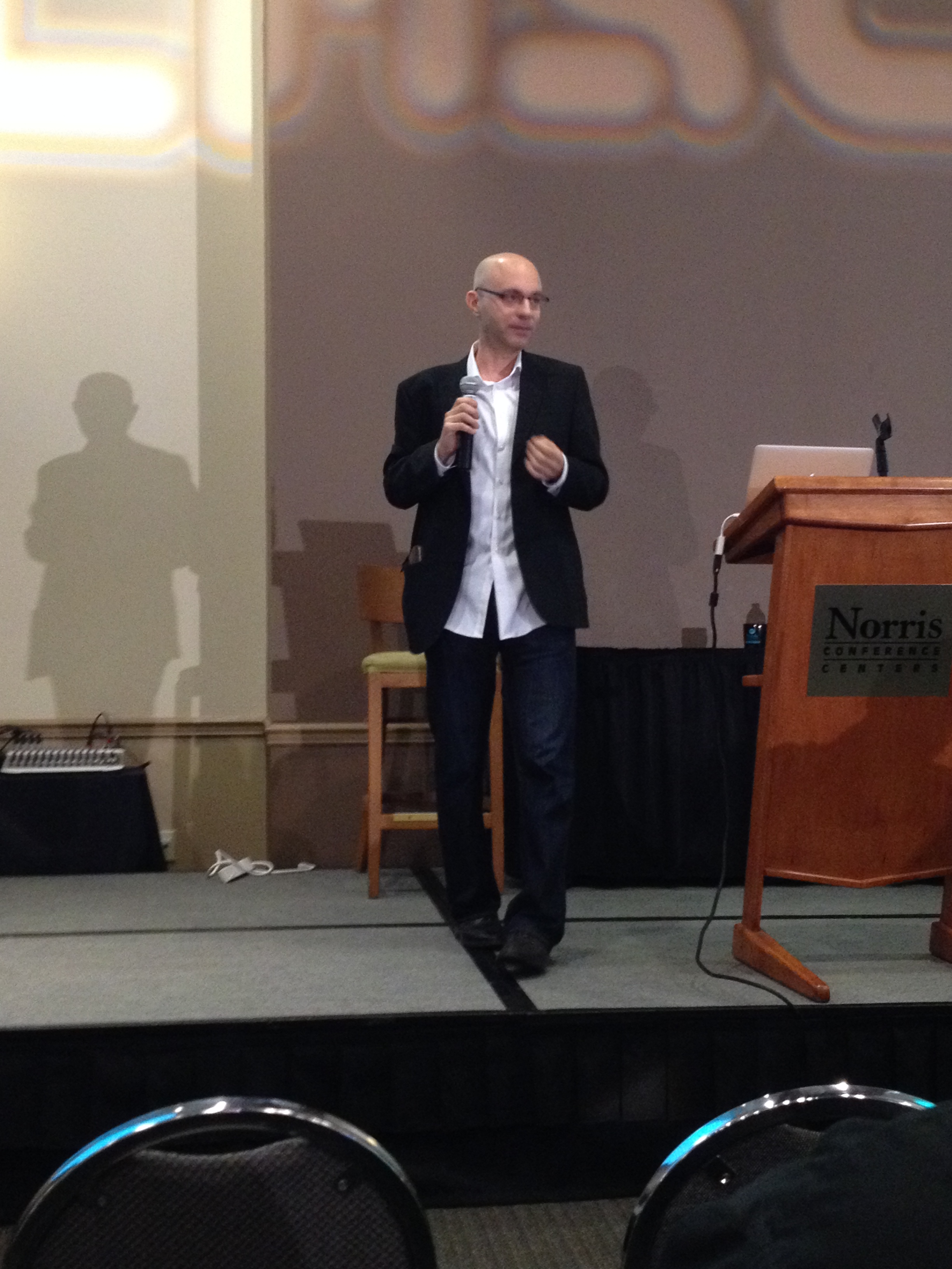 Everyone shuffles in slowly on the second morning of the con. I spent the pre-keynote hour with other attendees sitting around looking tired and comparing notes on gout symptoms.  (PSA: if the ball of your foot starts hurting really bad one day, it’s gout, take a handful of Advil and go to your doctor immediately.)