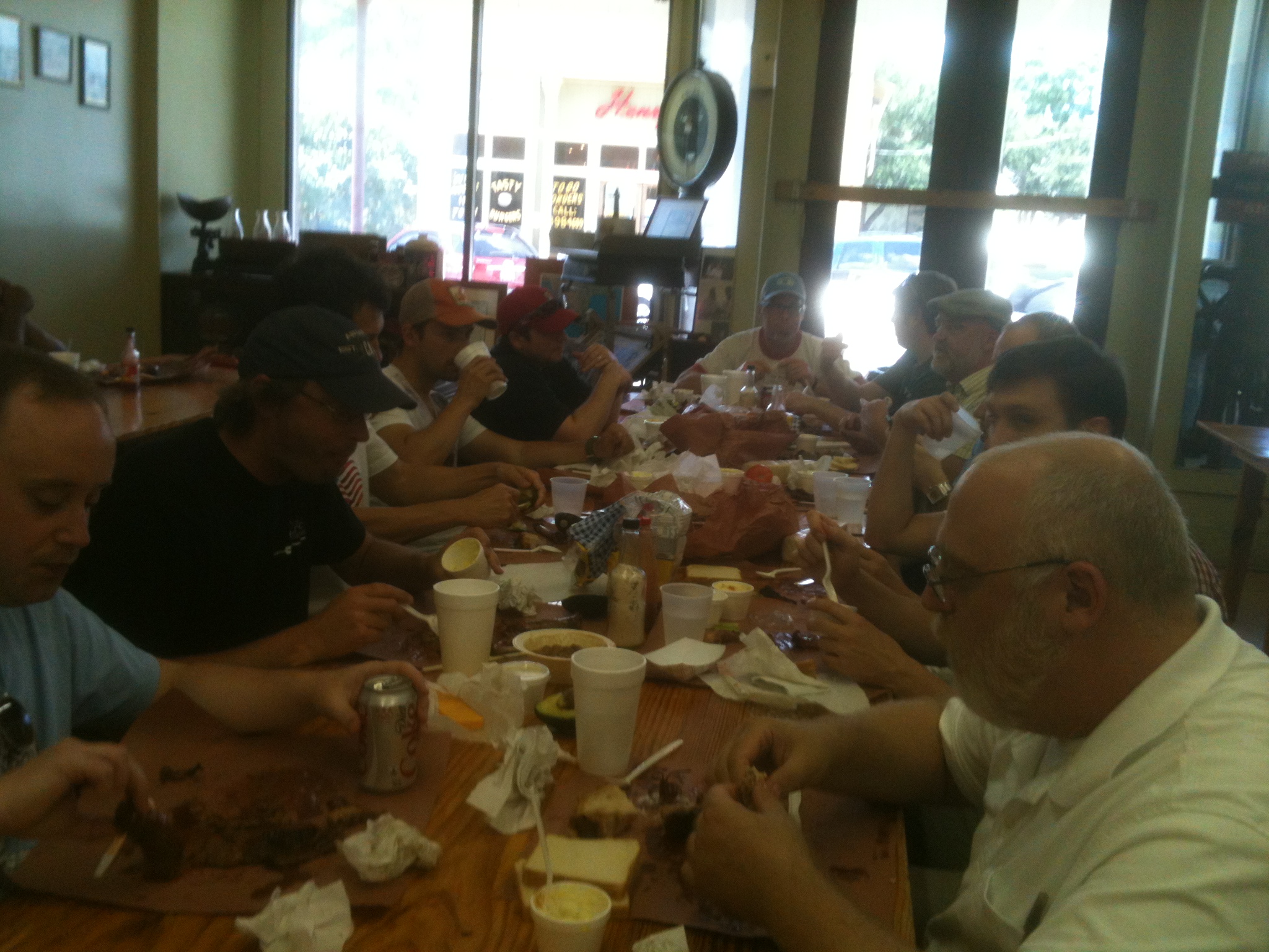 Well of course the luridly titled “Meat, Guns, and Booze” specifically evokes Texas and is tuned to our location.  But consider the same kind of event cadence and think about what’s distinctive in your area. You just want the team to share a meal, then participate in an activity that everyone can easily participate in, and then have an opportunity to relax and talk with each other afterwards.